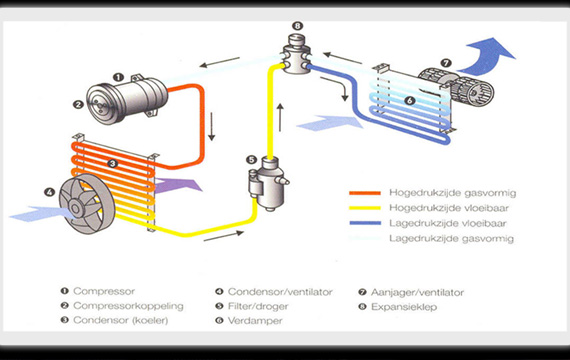 Als u op de foto klikt vergroot deze uit. Op deze foto kunt u de werking zien van een auto airco systeem.